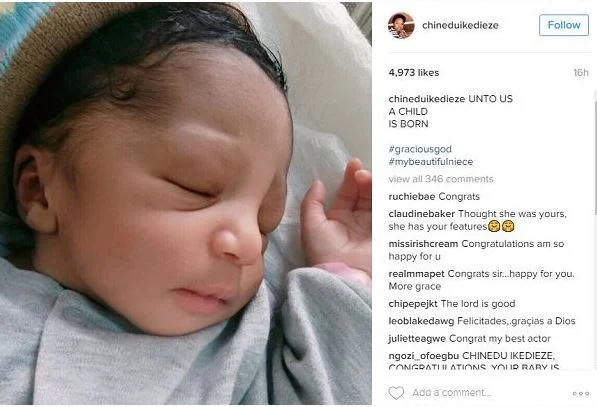 The diminutive actor took to his Instagram page @chineduikedieze to make the announcement, although he did not disclose the sex of the child.